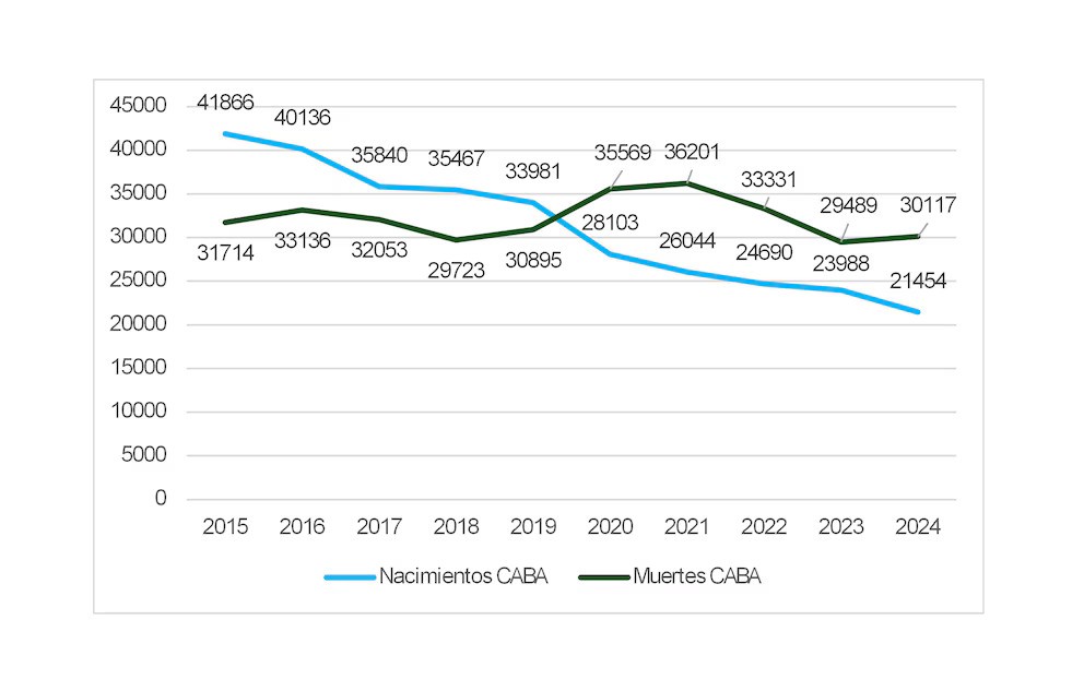 Above: Total number of births and deaths in the City of Buenos Aires (CABA), 2015-2024