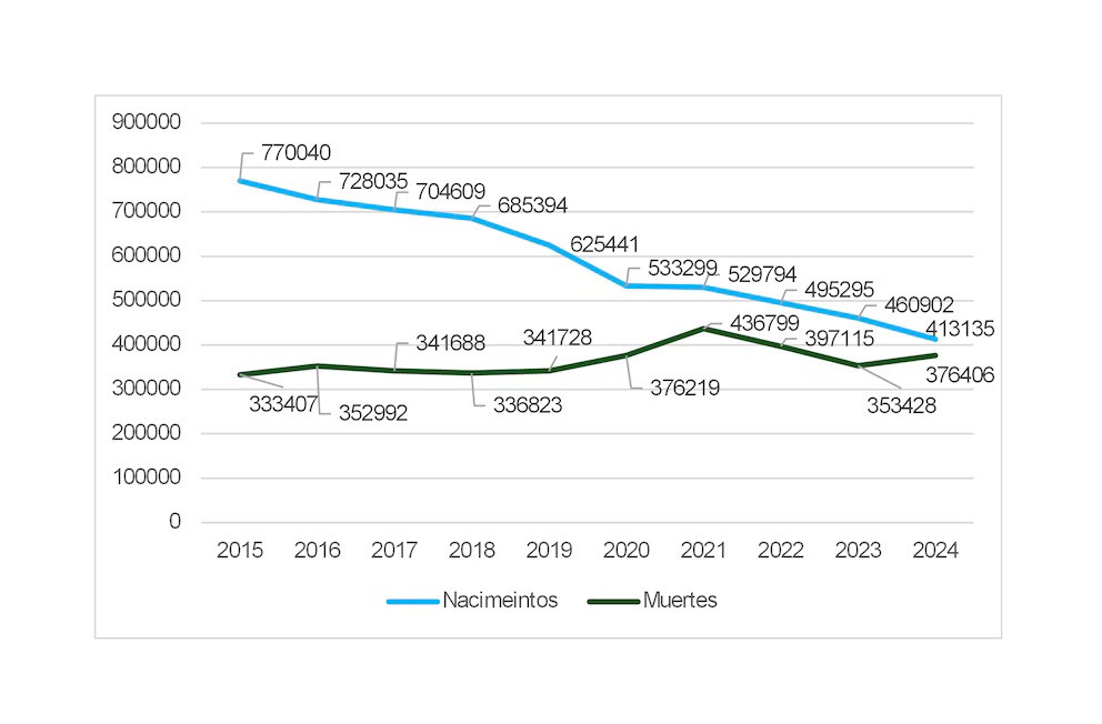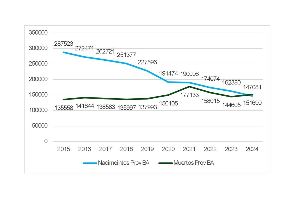 Above: Total number of births and deaths in the Province of Buenos Aires, 2015-2024.